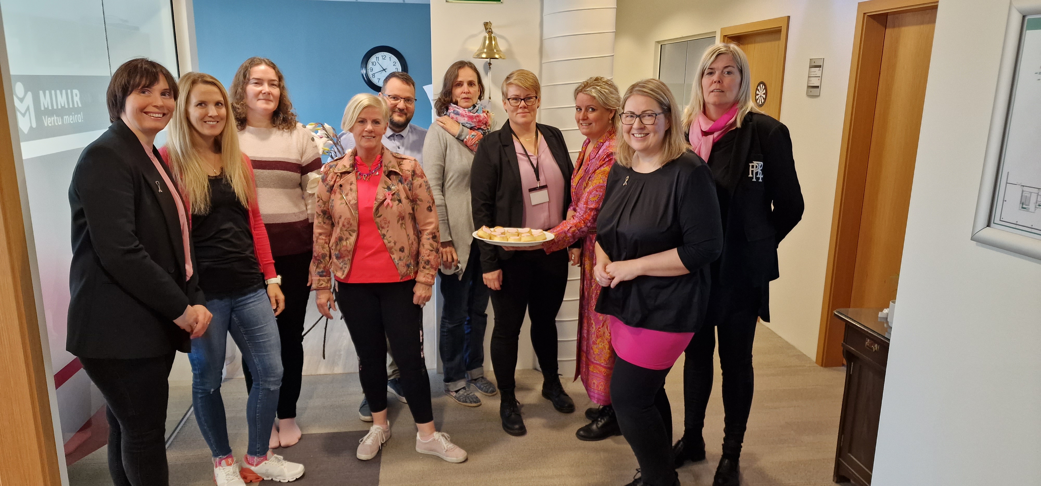 Starfsfólk Mímis brá undir sig betri fætinum og klæddist bleiku í tilefni af bleika deginum 14. október. Að sjálfsöguðu voru bleikar veitingar í takt við daginn. Bleiki dagurinn er ætlaður til þess að vekja athygli á árverkniátakinu Bleiku slaufunnar og baráttu gegn krabbameinum hjá konum. Starfsfólk Mímis hvetur aðra til að taka þátt í deginum og sýna samstöðu til þeirra kvenna sem greinst með krabbamein.