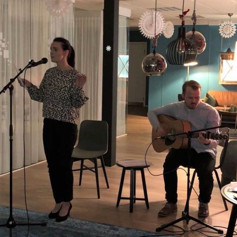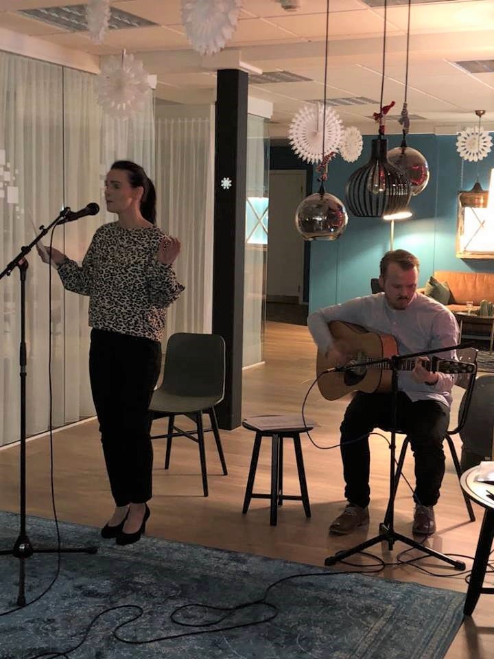 Kolbrún Eva Viktorsdóttir, sem einnig er fyrrum nemandi Mímis, flutti nokkur jólalög við undirleik bróður síns, Sindra Viktorssonar.