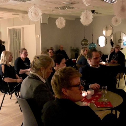 Hlýleiki er mest lýsandi fyrir þá stemningu sem myndaðist þegar kennarar, matsaðilar og starfsfólk Mímis kom saman síðast liðið föstudagskvöld í nýju nemendarými á jólagleði Mímis. Í því tilefni var nemendarýmið formlega vígt en það var endurhannað fyrr á árinu með það að markmiði að búa nemendum þægilegt og hvetjandi námsumhverfi sem eftirsóknarvert er að dvelja í.
