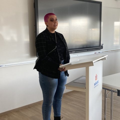 Rut Svavarsdóttir flutti ávarp fyrir hönd nemenda í menntastoðum staðnámi. Rut talaði um að sér hefði komið á óvart hvað námið gekk vel. Hún hefði alltaf talið sér trú um að hún gæti ekki lært en ákvað að láta reyna á námið hjá Mími. Hún kom sjálfri sér heldur betur á óvart og útskrifaðist með 9,7 í meðaleinkunn, trú á sjálfri sér og nýja raunhæfa drauma um framtíðina. Örvar Bessason ávarpaði nemendur fyrir hönd nemenda í menntastoðum dreifnámi. Örvar var að snúa aftur í nám eftir 30 ár á vinnumarkaði. Eðlilega vissi hann ekki við hverju átti að búast en fann sig fljótt í hópnum enda mikil samheldni sem myndast í nemendahópum okkar. Námið gekk vel með aðstoð góðra kennara og starfsmanna Mímis og stefnir Örvar á nám í guðfræði í Háskóla Íslands.
