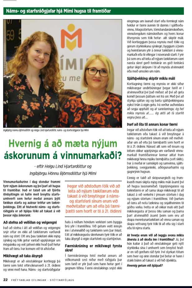Grein eftir Helgu Lind Hjartardóttur og Ingibjörgu Hönnu Björnsdóttur, náms- og starfsráðgjafa hjá Mími, sem birtist í Eflingarblaðinu í febrúar 2018.