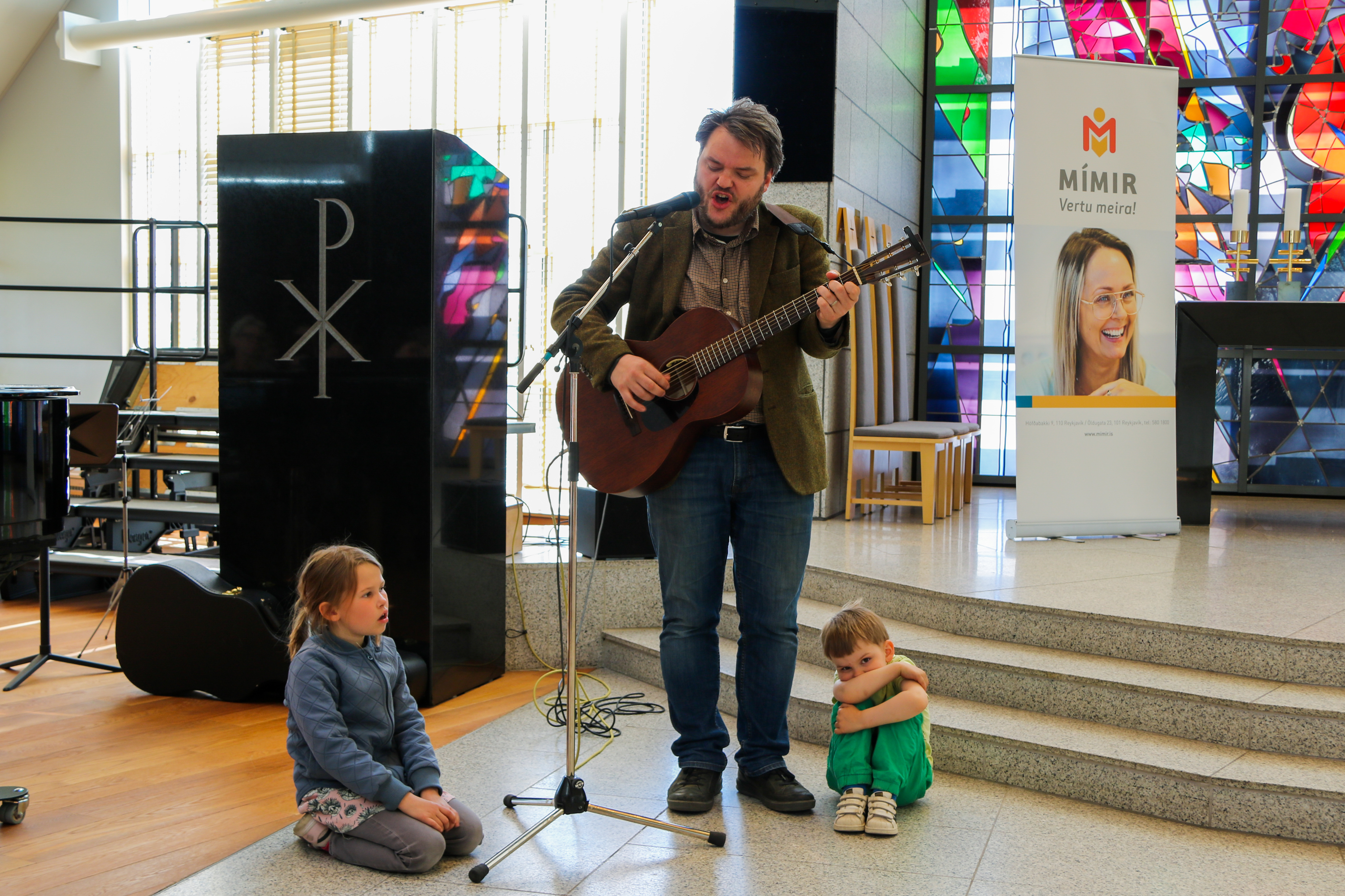 Svavar Knútur söng og spilaði tvö falleg lög og minnti útskriftarnemendur á mikilvægi samkenndar í öllum samskiptum.