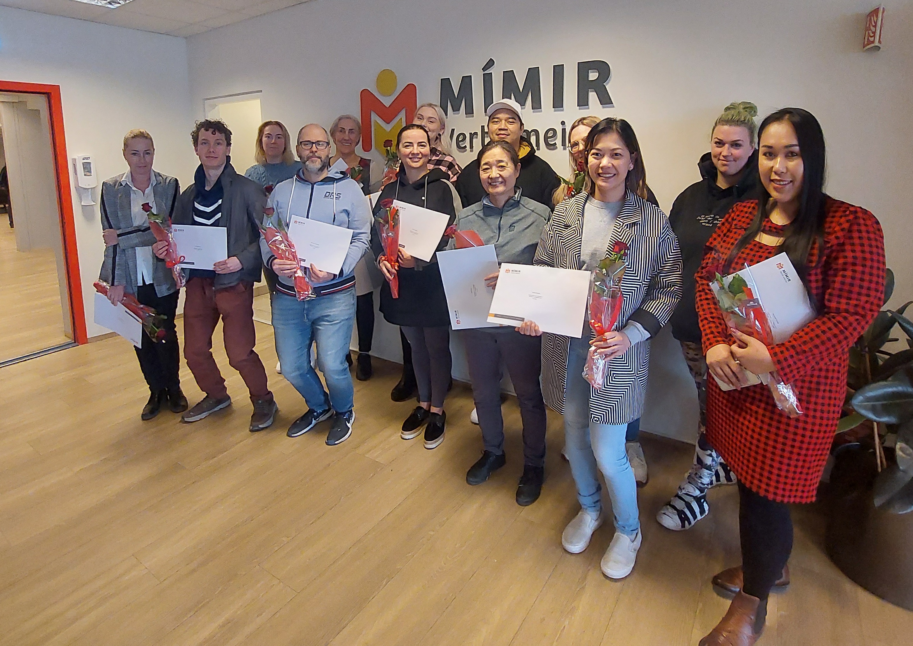 Útskriftarhópur í fagnámskeiði 1 fyrir starfsmenn í heilbrigðis- og félagsþjónustu.