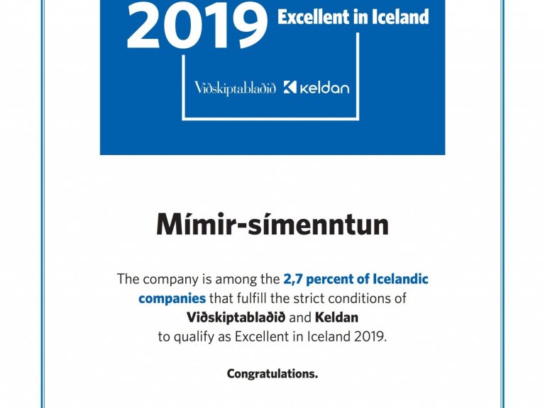 Annað árið í röð er Mímir eitt af fyrirtækjum á Ísalandi sem uppfylla skilyrði Viðskiptablaðsins og Keldunnar til að teljast Fyrirmyndarfyrirtæki í rekstri árið 2019.
