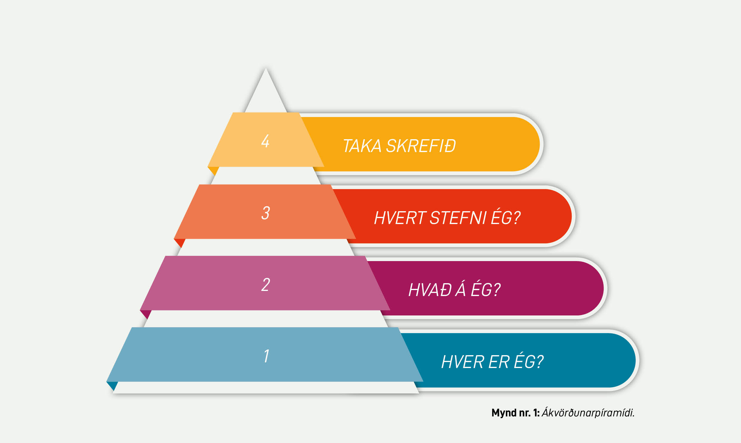 Að lokum í fjórða og efsta þrepinu eru niðurstöður allra hinna þrepanna teknar saman og komið að því að taka skrefið.