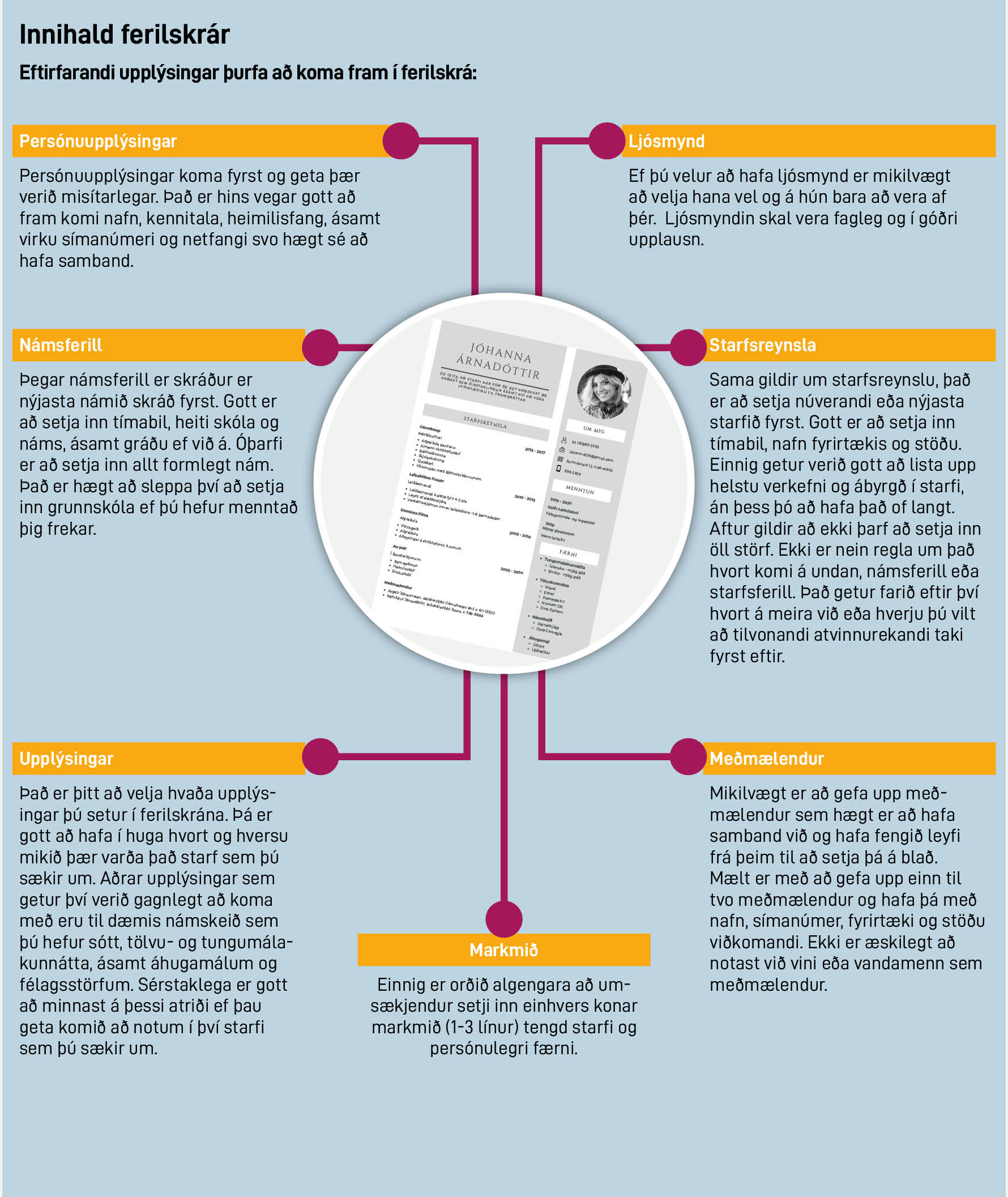 Það getur líka verið gott að eiga grunnferilskrá sem er svo hægt að aðlaga hverju sinni þegar sótt er um starf, sama gildir um kynningarbréf (eru lifandi skjöl).