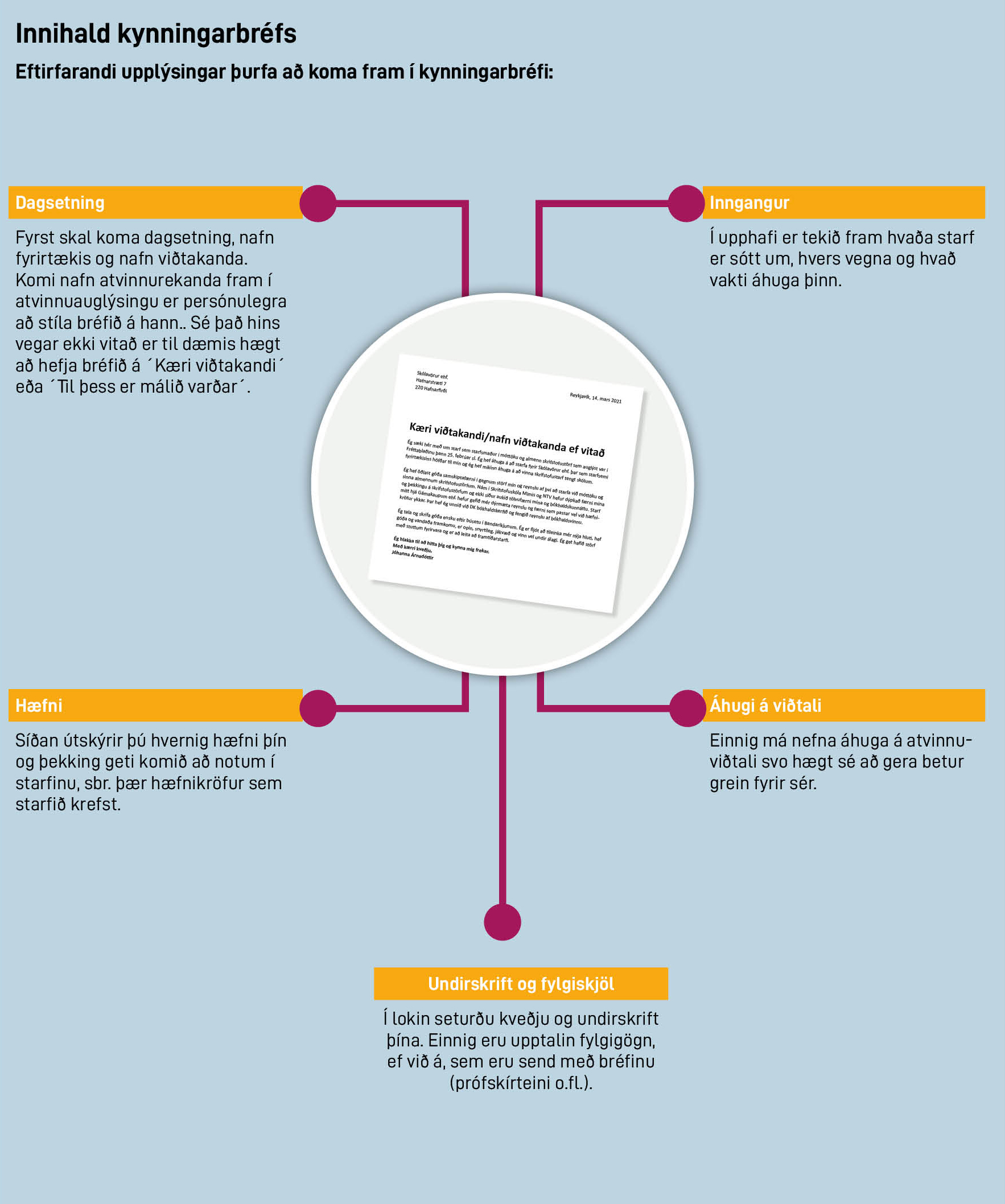 Hér gefst umsækjanda því tækifæri til að vekja betur athygli á sjálfum sér og rökstyðja það sem fram kemur í ferilskránni. Mikilvægt er því að fjöldaframleiða ekki kynningarbréfið heldur aðlaga það að hverju starfi fyrir sig.